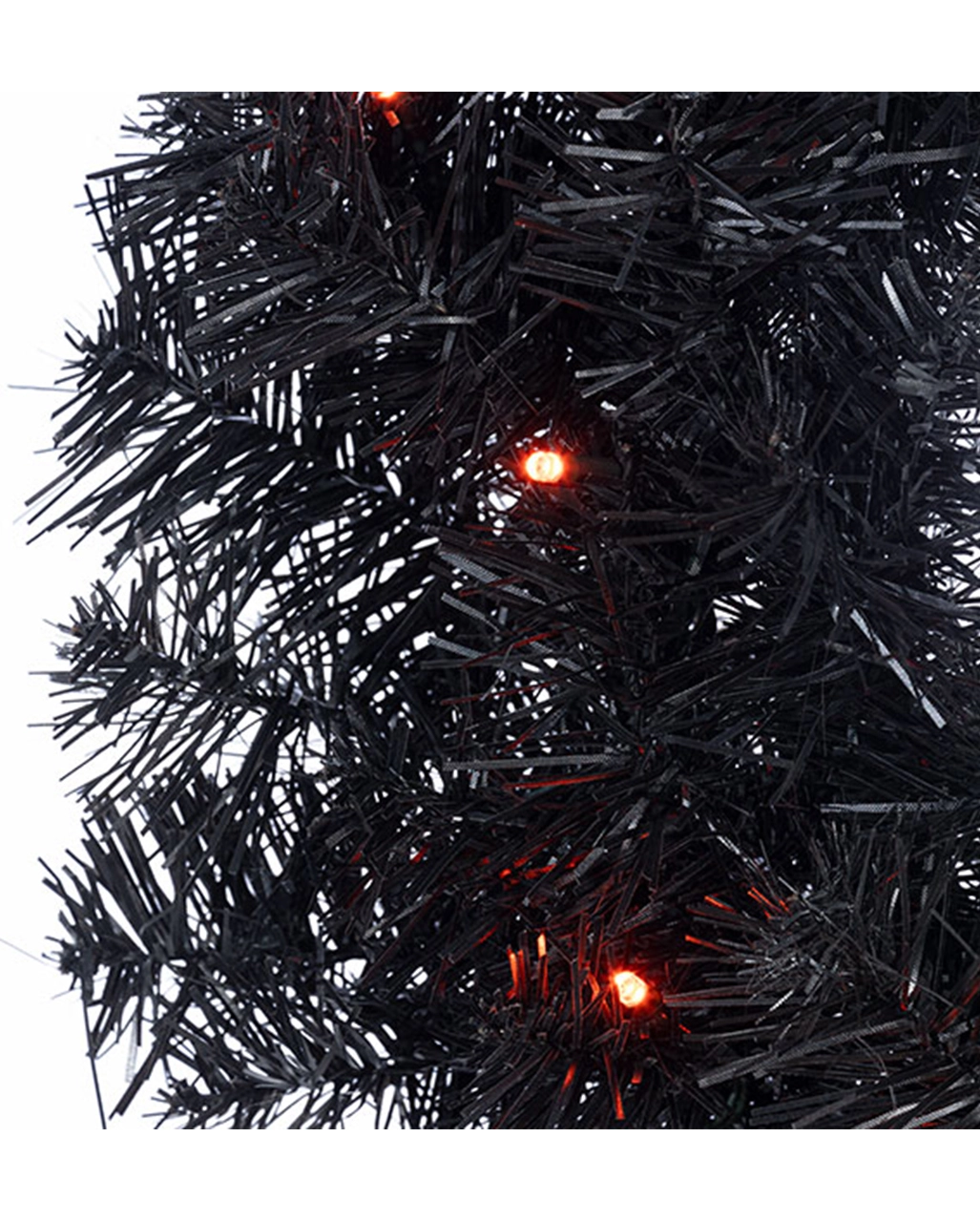Schwarze Tannenspitzen aus Kunststoff bilden die Basis des Halloween Kranz mit LED schwarz-orange. Damit bekommt deine Halloween Deko einen düsteren Gothic Look verpasst. Das Kranzgeflecht dieser Halloween Türdekoration ist gespickt mit orange leuchtenden LED Lämpchen. Weitere Halloween Kränze und Gothic Deko wie die Spooky Lametta Girlande 200 cm KILLSTAR findet ihr hier im Shop.