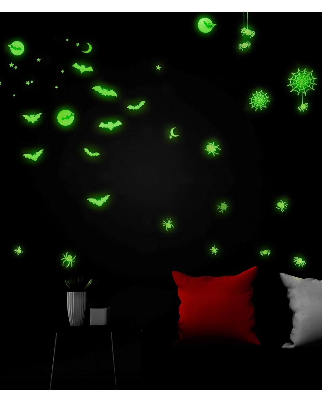Lieferumfang: 1 x Leuchtende „Fledermäuse & Spinnen“ Halloween Sticker